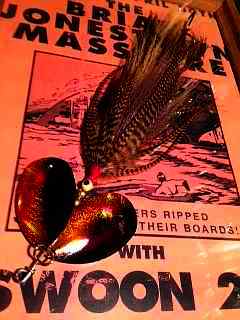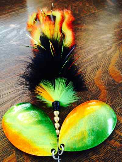 Posts: 1084 Location: Aurora | Another dbl 10 for a friend. Zonker body & legs with a hidden spinner above the trailer hook. A clear disc above the spinner protects the legs from getting wound up in the blade. Attachments ---------------- IMG_0506.jpg (23KB - 144 downloads) IMG_0507.jpg (19KB - 163 downloads) | ||