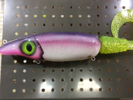 just got a cancel for a bait ... i have it for sale 55$ US shipped !!! it's a custom pullbait weight 12 oz with tail strech out it's 15 inch ! huge bait with terrible action !!