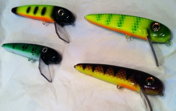 Those paint jobs are awesome. Would you happen to give lessons?;) What baits are those and do you make lures also? I should send you some of my jerkbait blanks to paint for me ,Gees, great work,
