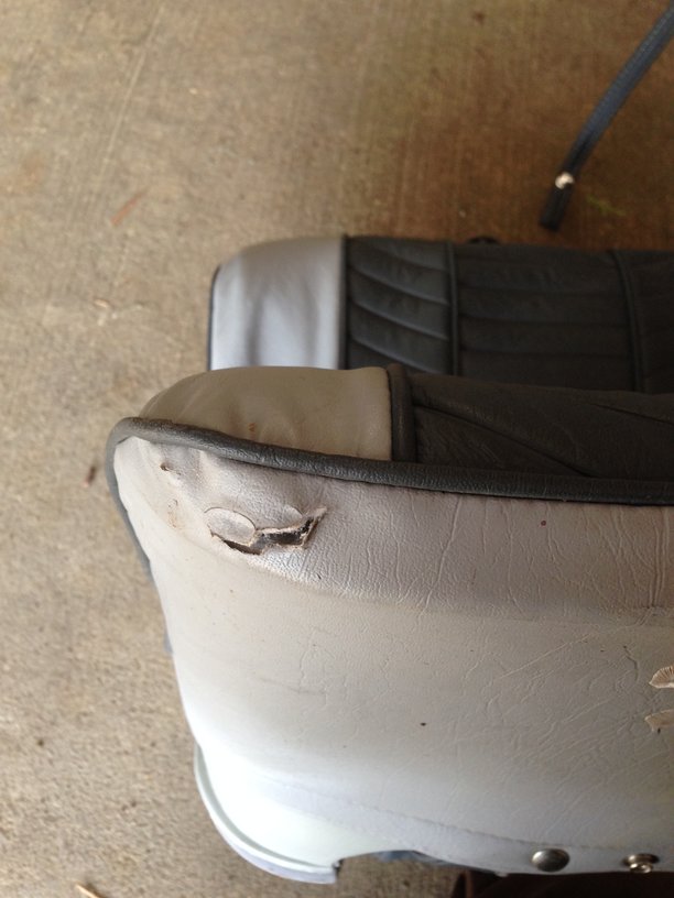 I have 3 older tuffy seats that were not used very much, they were taken out of the boat and replaced with the newer style seat. I have two folding seats one with a base, and one bicycle seat, no posts. they are grey in color with white tuffy script on them. one seat has a small tear but other than that very nice.