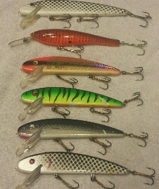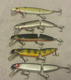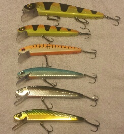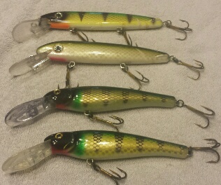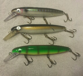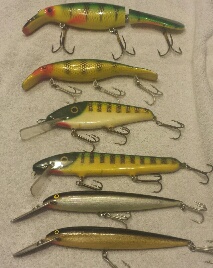 Cranes, $8 each, rapalas, $6 each. Long crane sold.