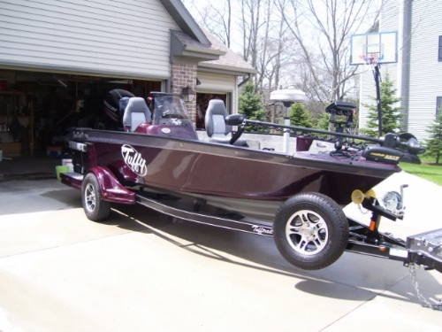 Posts: 410 Location: With my son on the water | Well I have the new ride and have a few hours on it. Let me tell you this took 2 years. I am 55 year old and this was my retirement present. If I was buying a new boat it had to be better than what I had. I have always run Lunds and they were great boats but after reading the discussion about glass I made the switch. I primarily cast for muskie so I needed a boat more set up for casting but I also had several important criteria. I spend 5 weeks on LOTW each year. 1. Needed to be a true vee hull. 2. Needed to be able to lock up 8'6" rods. 3. Needed to have a large enough cockpit for a muskie net in the ready position 4. Needed to have a large gas tank. 5. Needed to be able to store at least 3 x 8'6" rods on a shelf on the port side. 6. Needed to be single axle so I can move it by myself. 7. I didn't want a 96" wide boat because of garage space. 8. Needed to have ample lockable storage. 9. Able to put a kicker motor on each side without a bunch of work. The Tuffy 1760 GC esox is the only boat I could find that did this, and I looked at all of them. I bought the boat from MD Services 1-262-206-3045. Mike is a great guy and easy to work with. Between Mike and Steve Worrall they made sure everything is perfect. We did some nice customization. 1. Added 2 more rod tubes so I have 12 that lock. 2. Move the gas fill so I can lay 9 ft rods on the port shelf. 3. Didn't install any cleats that the net will get caught in. (This already saved one net job for my son this week). 4. I added a divider between the port shelf and the passenger seat. I put the net next to the seat and the divider prevents the bait attached to the stowed rods from getting tangle in the net. Comparing this boat to my Lunds is night and day. Like a Tank versus a Corvette. This is the first boat I have ever had were I have open space in my compartments, and I have it set up to live out of for weeks. Against Steve's advice I will be plugging my livewell to be able to store (life jackets, a daily bucket, rope, beach shoes, garbage can & cooler) The rod storage is great, I can lock up 12 rods and strap another 10 to the decks. I bought a 150 fourstroke, not for the speed but the fact that I can idle back and save gas. At 3000 rpms I can cruise at 25-28 mph. Open it up and it is a rocket, 54+. I will be adding a 9.9 pro kicker mainly so I can get back if I hit a rock. We installed a 80 Terrova Link which has more technology than I will ever use. 2 - 8 inch humminbirds. I put the bow unit on a long ram mount so it is closer to my older eyes. They are all locked on. Between the lockable rod storage,compartments and dura locks, I can lock up everything which helps a guy sleep. I could go on and on but I am not a good writer, I hope my pictures come through as I have been struggling with that. If you have any question please contact me, if you ever are interested in a Tuffy I would certainly give Mike a call. The only regret is that I didn't do this 20 years ago. This is one kick a-- boat. Have a good day Edited by btfish 6/20/2014 4:03 AM Attachments ---------------- a833f38a-5def-4927-add3-8c020cf671c6_zpsd15d143e[1].jpg (144KB - 671 downloads) 351d7442-eea2-47bf-b106-1c8668330153_zps14227954[1].jpg (145KB - 920 downloads) | ||