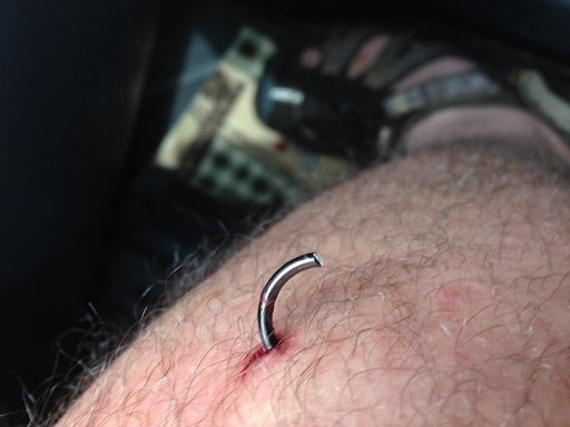 Posts: 1460 Location: Kronenwetter, WI | Funny. Put in Monday on the windy side of the lake...partner dumped me in then parked truck. The wind was BLOWING with white caps blowing me a bit faster than Iiked into the dock to pick him up...I raced to the front deck to catch the boat and keep from slamming into the dock and when I dropped to my knees I soon realized I did so right next to my tube holder full of musky baits and knew something wasnt right...looked down to see a 6 ought buried to the hilt in my calf...I'm sure I jinxed myself when I told my buddy last month that I'd never buried a hook in me....oh yeah, popped it out with pliers, some neosporin, band aide, and fishing in no time...one follow...sheesh, I thought I was paying homage to the musky gods, but they dont payment Mondays. Edited by Cowboyhannah 7/2/2014 11:42 PM Attachments ---------------- image.jpg (39KB - 325 downloads) | ||