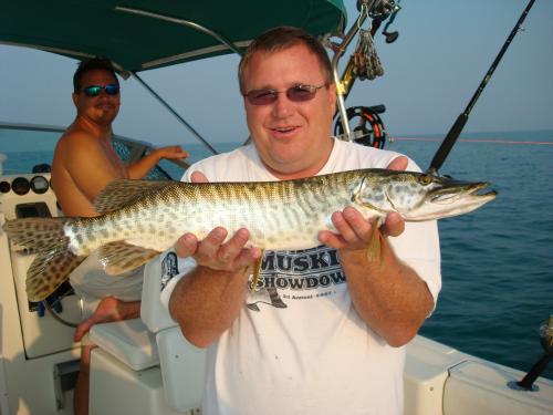 Posts: 192 | I caught this fish on St Clair a couple of weeks ago. The charter guys said it was a Silver Muskie. One of them told me he has only seen a couple of these fish in 30 years there. I'm not sure but it definitely has different colors than the normal St Clair Spotted Muskies. I've caught a lot of Clear Muskies over the years at Cave Run and Green River in Kentucky but this is not like those fish. Anyway, I thought it looked kind of cool. Attachments ---------------- Silver Muskie - Copy.jpg (119KB - 512 downloads) | ||