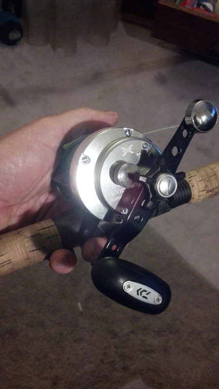 Location: Latitude 41.3016 Longitude 88.6160 | This Power Handle is OK, it is balanced, H.D. won't bend, longer then the stock handle, has 2 ball Bearings in the foam Paddle. I will be stocking them for $49.95 installed. Fits any 300-400D Calcutta reels. Attachments ---------------- mjx-yQ1rXVaxDUf8HVeUl7g.jpg (1KB - 371 downloads) | ||