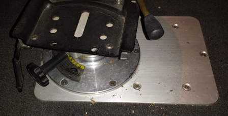 My boat came with the helm seat base tapped/bolted to about a 16”x12”x3/8” polished aluminum plate screwed down directly on top of the carpet. I suspect the previous owner was a big guy who had it custom-made, it looks factory with everything countersunk and polished.