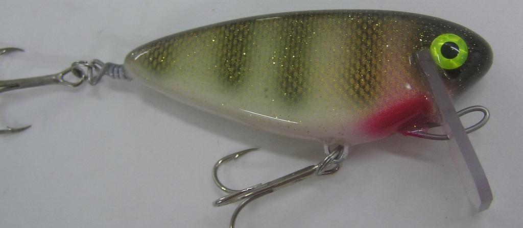 Asking 20.00 for this little jewel. Color is Olive perch Pikie scale.I cant sell it as new because I accidentally scratched the lip. I normally get 25.00 for these. 4 inch Hard Cherry wood. .057 stainless steel wire through construction. Very tough little lure. Suspending shallow version stays in the top two feet ripped, twitched and the belly roll is super exaggerated . It is simply a lure that does tricks beyond what you may think a crank is capable of. I know there are several guys here who have them. This one is for you. Shipping is 2.50 .Mike