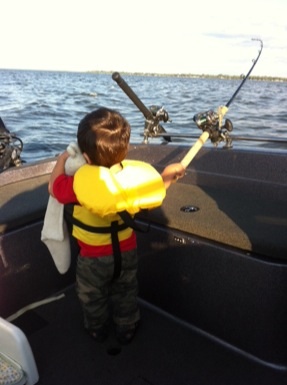 | Lots of great ideas here. I second quite a few of them. Games, Ipads (just watch cause my little on almost tossed ours overboard), snacks, etc. Also got him a pair of cheap sunglasses because he always wants to wear my expensive pair! My wife and I hang out with him in the boat in the garage as well. He enjoys pushing all the buttons on the cd player, marine radio, sonars just everything! Always have to make sure hooks, baits, rods and tools are put away or those will be picked up. We do short trips as well but he has napped on the water so bring a blanket and pillow. Minnows or walleyes in the baitwell or livewell is a good 15 minute diversion. Keep a tub of wipes handy too:-) Our lil guy was about 15 months here on the boat watching the boards and keeping an eye on the rod, guess he wanted first dibs on the fish! 18 months now and he will routinely reel in outside boards into inside boards and make a mess but he has fun with it. Next summer he'll be a little bigger and will have a more comfortable life jacket. He hated it at first but we started putting it on him while the boat was in the garage and he got used to it. At his age, I definitely have to have a second person in the boat to keep an eye on him. Anything not bolted down he has attempted to throw overboard. Lastly watch the days you go out weather wise. You don't want them to have a bad experience in rough water or foul weather. Start out slow and next thing you'll have a fishing partner for life. Attachments ---------------- image.jpg (30KB - 355 downloads) | |||