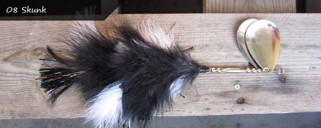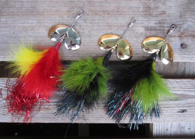 Posts: 185 Location: On the water | Finally made one for myself again: 2 5/0 hooks 12.5" long 2 #10 copper blades 2 marabou coils, 1 flash coil Attachments ---------------- beaver.jpg (42KB - 260 downloads) | ||