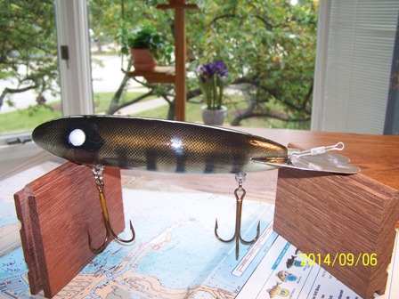 Location: Glen Ellyn Il | I made two four inch long bodies large bass lures for muskie, 1.5 inches diving lips a golden walleye and a bass pattern with 2/0 hooks. At times muskie like to eat small stuff. I also made couple big 10 inch bombers for some muskie hunter, will show the Walleye patern bait only