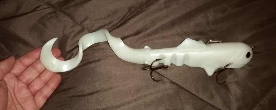 I made some all pearl white SuperDs for a customer a year ago and still have about 40 left. I just need to get rid of them so I thought some here might like a nice white base plastisol swimbait to paint. $6 each plus actual shipping. Just email me and let me know how many you want. If you buy 5 or more I will drop the price to $5 a SuperD. These are the Mag 8oz size.