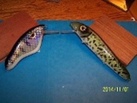 My first Holografic foil bait and a repaint for the 5 inch drop belie Crane Bait and the 7 inch copyof a crane bait that I made for myself the crappie is my first aluminum foil bait. Was fun to do something new