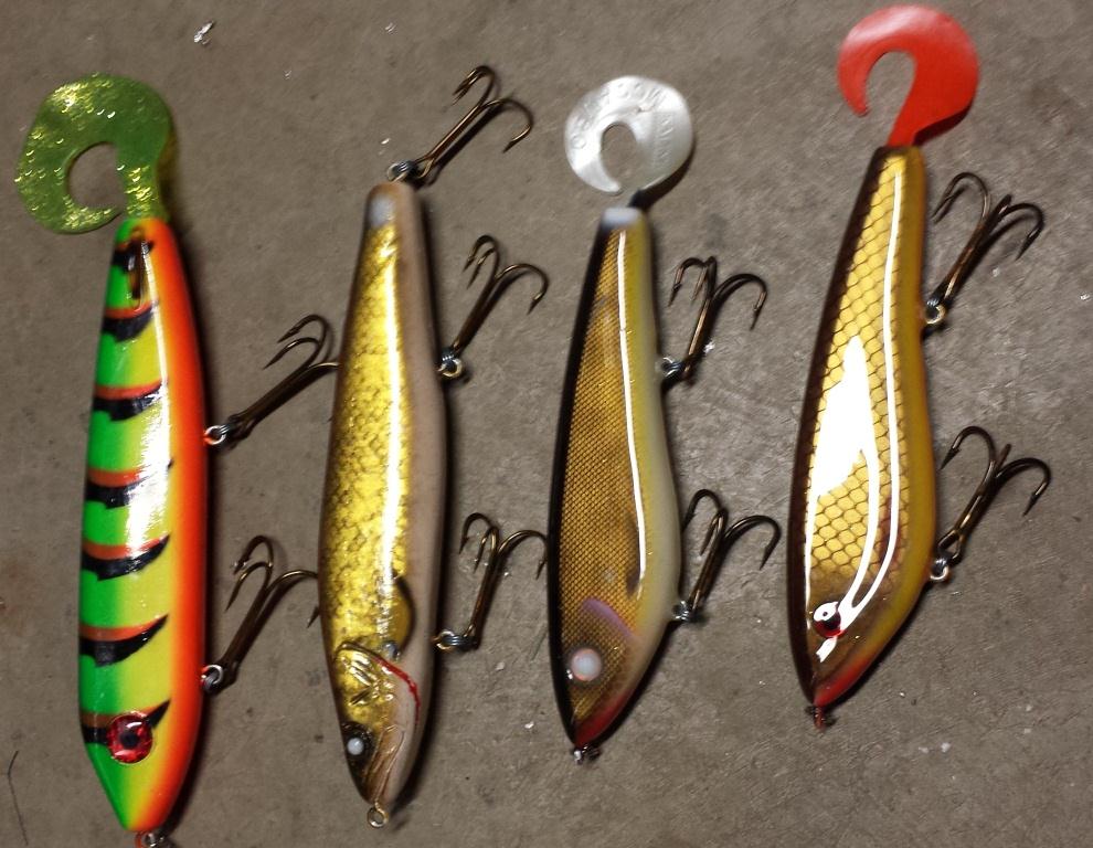 Posts: 49 Location: Gone Fishin | 10” Musky Snax Walleye MINT $40 Shipped 8” Danzyck Glider w/ Stan Durst Custom Paint $15 Shipped 8” Cobb Yellow/Purple Glider $20 Shipped 9” Gold Sebile Magic Swimmer Some Hook Rash $15 Shipped Make an offer on whats left. All lures are in good to great condition unless otherwise noted. All prices include shipping in the US. If you buy more than 1 bait we can work out a deal. If you want better pictures of a specific bait let me know. Blade Lot DBL 12, 10 & 8 SOLD 10” Firetiger Curley tail Hellhound SOLD 9” Walleye Motivator SOLD 9” Orange Carp Modivator SOLD 10” Cisco Smuttly Dog SOLD Dbl 10 Brown Yellow Spinner missing one eye SOLD Bucket Head Blue/Chart SOLD 10” Firetiger Big Game? Jointed Crank SOLD 6” Cobb Chart/Black Round Nose Glider SOLD 10” Musky Snax Sucker Crank SOLD Edited by AGOODS 11/20/2014 12:41 PM Attachments ---------------- 20141109_194854.jpg (166KB - 332 downloads) 20141109_195106.jpg (120KB - 307 downloads) 20141109_195342.jpg (98KB - 347 downloads) 20141109_195639.jpg (99KB - 336 downloads) | ||