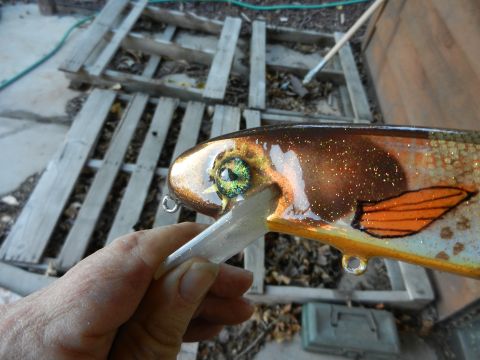 More Muskie Fishing -> Basement Baits and Custom Lure Painting -> Foiled Jake
