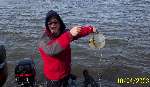 JoMusky with the smallest fish in my boat. Sorry, Jo. I had to!