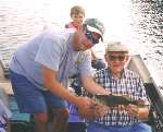My grandfather with a bass on the first evening of our trip to the manitowish chain |