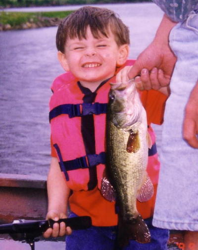 My middle son with a nice bass. Look at the seat. We are wet and having fun.